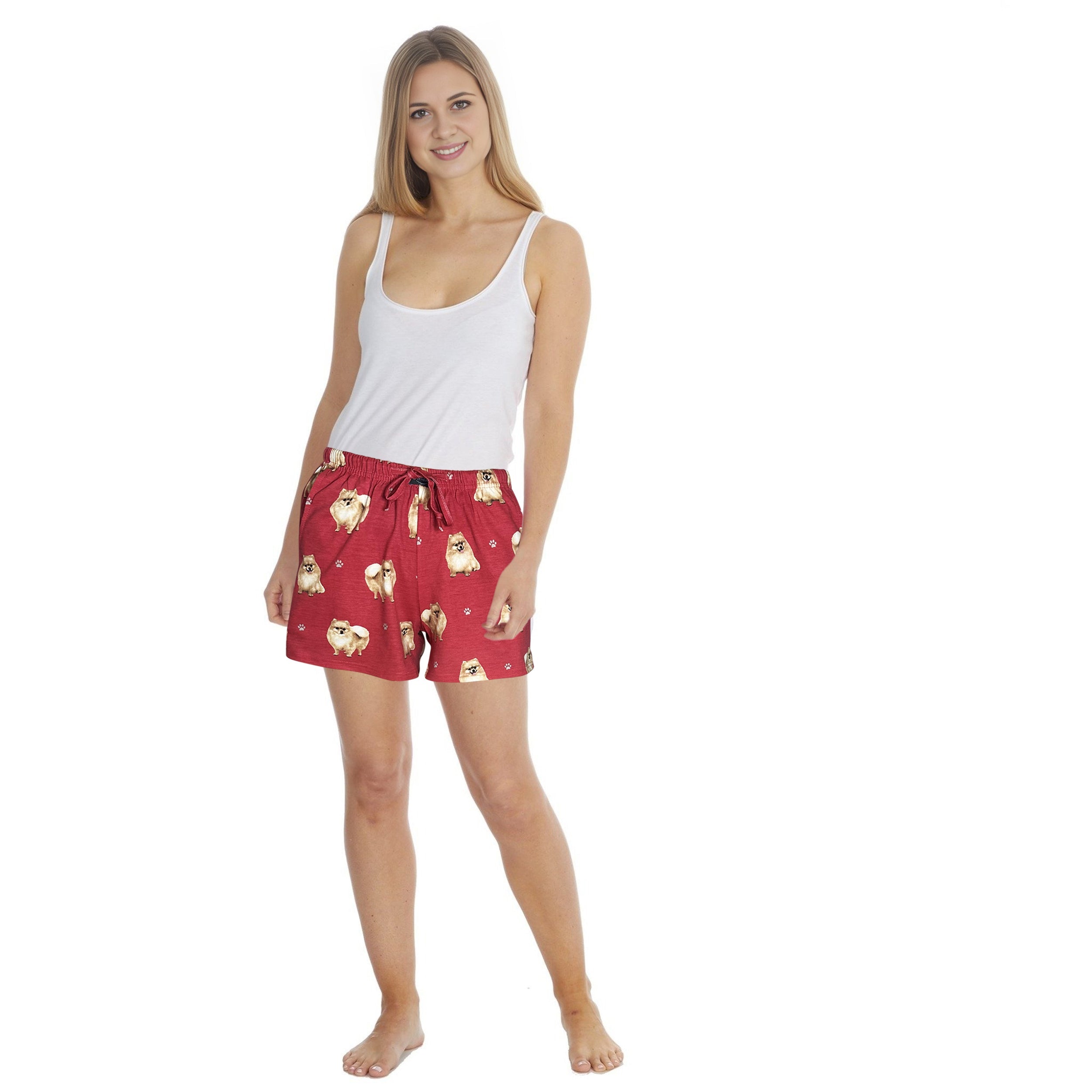 Indulge in your love for dogs with these charming Pomeranian womens lounge shorts. Crafted from soft, breathable fabric ideal for warm days, these shorts feature an elastic waistband and spacious fit ensuring comfort all day long. Stay stylish with deep side pockets and adorable dog prints, a perfect choice for dog moms and pet enthusiasts. Whether relaxing at home, running errands, or on a summer getaway, these versatile shorts are a delightful wardrobe addition. Treat yourself or surprise a loved one with these comfy and practical shorts, perfect for various occasions like birthdays, Mothers Day, or casual gifting. Shop now at PrimePetGifts.com!